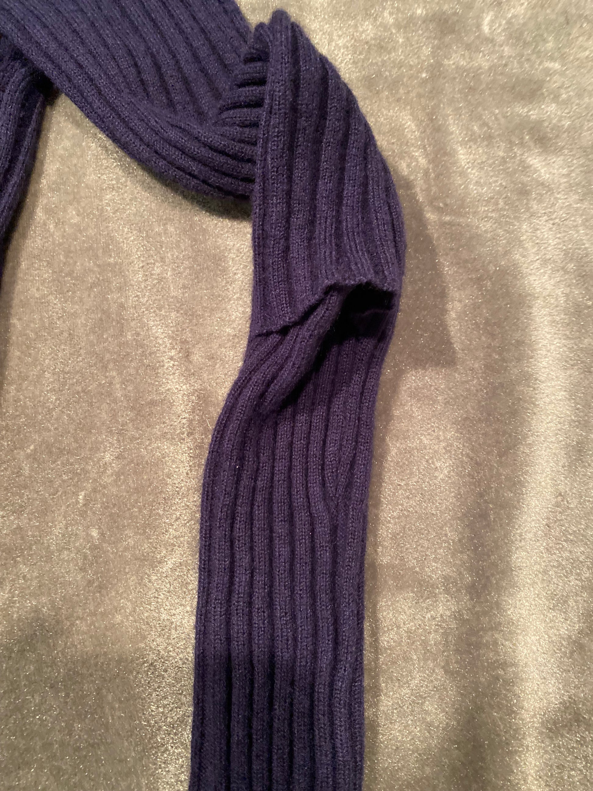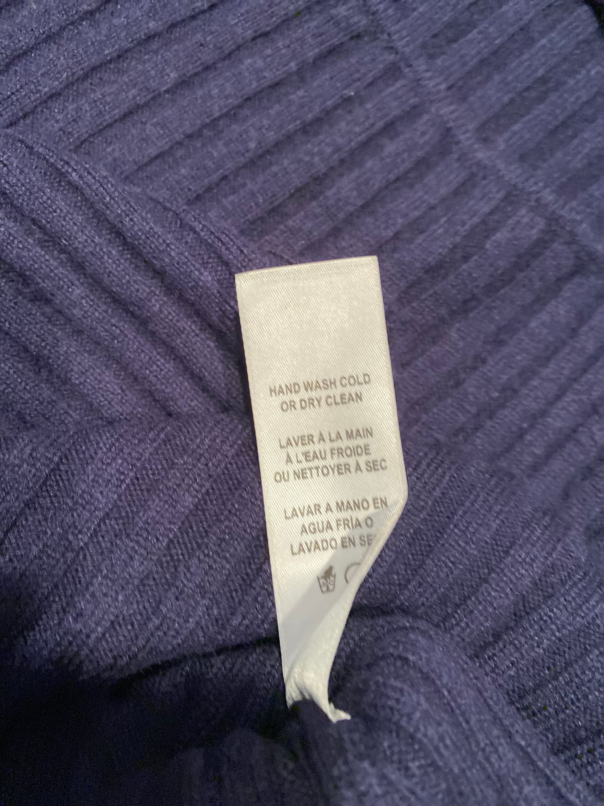 This FRAME DENIM sweater in size small features a sophisticated ribbed knit design with stylish cutouts at the front and elbows. The rich navy color with a subtle royal undertone adds depth and versatility to your wardrobe. Gently pre-loved, it offers both quality and character, perfect for layering or wearing on its own for a polished, contemporary look. #510