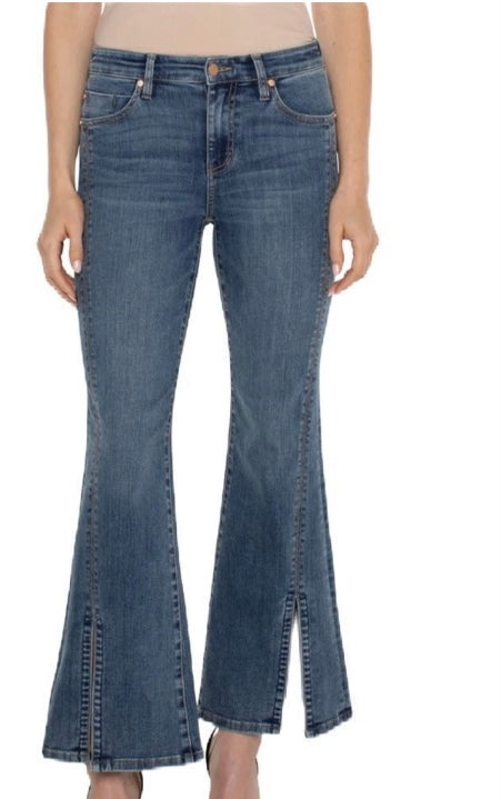 Expertly crafted with a timeless mid-dark wash, these Liverpool Hannah Flare Jeans in a size 26/2 are a must-have for any wardrobe. With a flattering front ankle slit and an approximate waist of 13.5 inches and inseam of 33 inches, these jeans offer a comfortable fit and elegant style. Excellent pre-loved condition for durability. #317