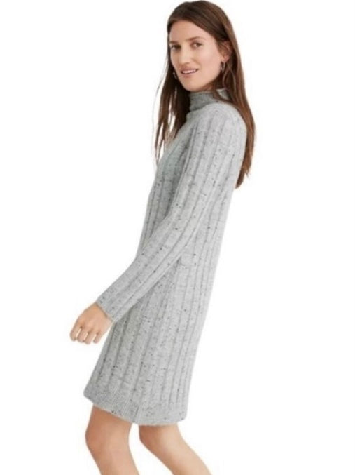 Introducing the MADEWELL Donegal Sweater Dress in size XL. This popular style is currently sold out in stores and is a must-have for any wardrobe. Featuring a classic roll mock neck, light gray color with donegal specks, and a loose fit design, this dress exudes both comfort and style. New with tags and retailing for $118. #153